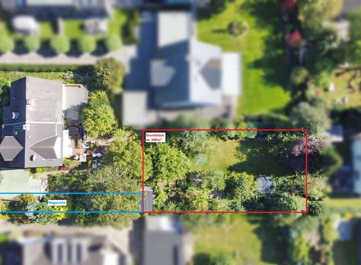 Das Gesamtgrundstück ist aktuell 1.352m² groß - hiervon stehen ca. 540m² zum Verkauf. Die Teilung wird im Zuge des Kaufvertrages abgewickelt.