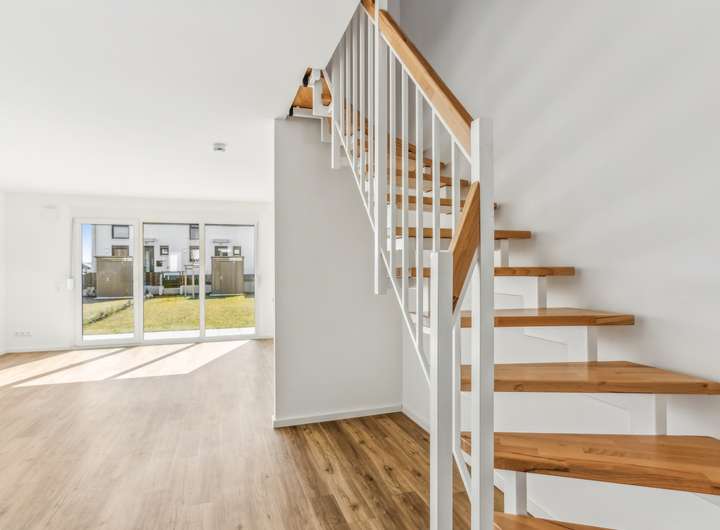 Flächenoptimierte Grundrisse und ein durchdachtes Raumnutzungskonzept machen die Reihenhäuser im Green Living zu einem perfekten Zuhause. Der offene Schnitt der Wohnbereiche, bodentiefe und teil-bodentiefe Fenster für lichtdurchflutete Räume, eine stilvolle Wand- und Bodengestaltung sowie das zeitlose Design der Bäder schaffen eine harmonische Verbindung von Funktionalität und Ästhetik. Hier finden Sie viel Raum für individuelle Gestaltung und ein Wohnambiente, das modernen Ansprüchen gerecht wird.