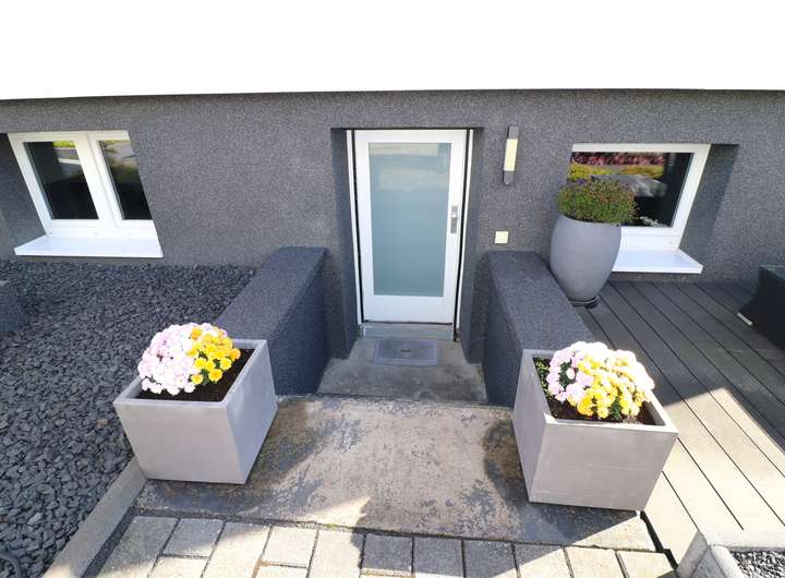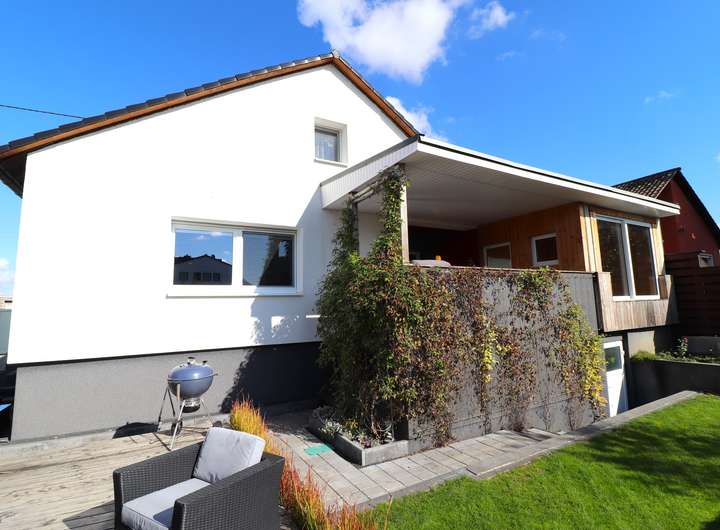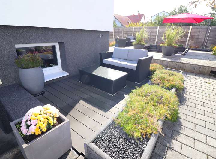 Das klassische, im Jahre 1966 in Massivbauweise errichtete Einfamilienhaus, befindet sich in einer verkehrsberuhigten Spielstraße. Die Grundstücksgröße umfasst 540 m². Die unmittelbare Umgebung ist geprägt von Bestandsimmobilien adäquater Bauweisen und verleiht dieser Liegenschaft ein attraktives und einheitliches Gesamtbild. Im Zeitraum von 2014 bis 2016 wurde die Immobilie kernsaniert. Das helle und modern gestaltete Treppenhaus verbindet die Etagen KG, EG und DG und bietet somit Familien oder Mehrgenerationen ein ideales Wohnkonzept. Die gesamte Wohnfläche beträgt ca. 184 m². Im EG befinden sich der offen gestaltete Wohn-Koch- und Essbereich, überdachte Terrasse, Wintergarten, zwei Schlafräume und ein TGL-Bad. Im Zuge der Kernsanierung wurde eine Grundrissoptimierung vollzogen. Der damalige Abstellraum und das Gäste-WC wurden zu einer Kombination aus Ankleidezimmer und Abstellraum umfunktioniert. Das DG-Studio mit seinem offenen Gebälk wurde mit einem TGL-Duschbad ausgestattet. Dieser Wohnbereich eignet sich hervorragend für heranwachsende Kinder oder die Nutzung als Gästezimmer. Die hausinterne Kommunikation auf allen Etagen ist durch eine Sprechanlage möglich. Ein besonderes Highlight dieser effizienten Immobilie ist das ausgebaute Kellergeschoss. Ergänzend zu der konventionellen Nutzung dieser Etage wurden zwei großzügige Hobbyräume eingerichtet sowie ein attraktives Wellness-Bad mit Whirlpool-Wanne und TV-Anschluss. Das KG ist ebenso über die Peripherie zu erreichen. Der Gartenbereich wurde pflegeleicht und komfortabel angelegt und verfügt über einen Gartenbrunnen zur Bewässerung. Zentraler Mittelpunkt ist der Freisitz mit Loungefläche und einem Hot Tub Badezuber. Die moderne Zaun- und Toranlage bietet ausreichend Privatsphäre und verleiht dem gesamten Objekt eine moderne und stimmige Außenoptik. Abgerundet wird dieses Außendesign durch den Vorgartenbereich mit geschicktem Einsatz von Naturstein und Begrünung.