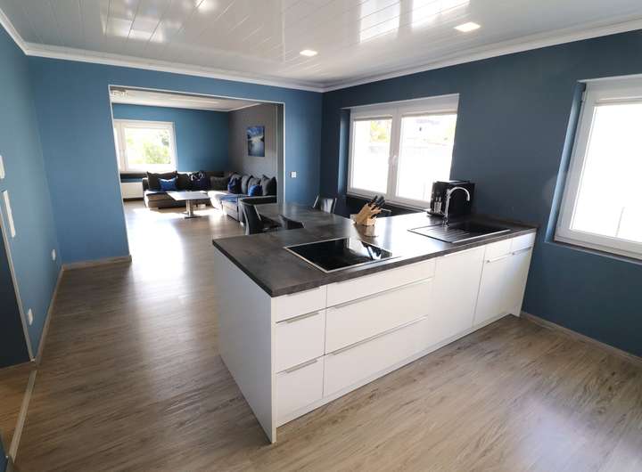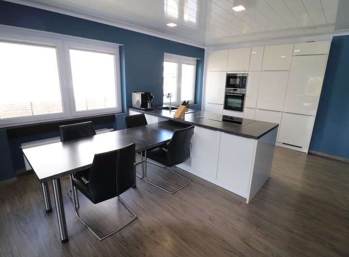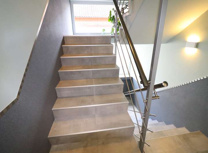 • Fußbodenbeläge: Design-Vinyl (Klicktechnik), Fliesen, PVC (Kellerraum I),