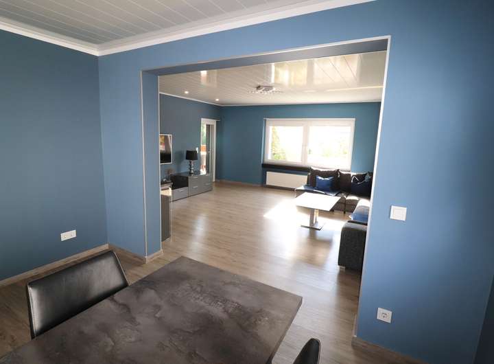 • Innenwandbeläge: tapeziert und gestrichen, Holzdielen-Verkleidung Wintergarten