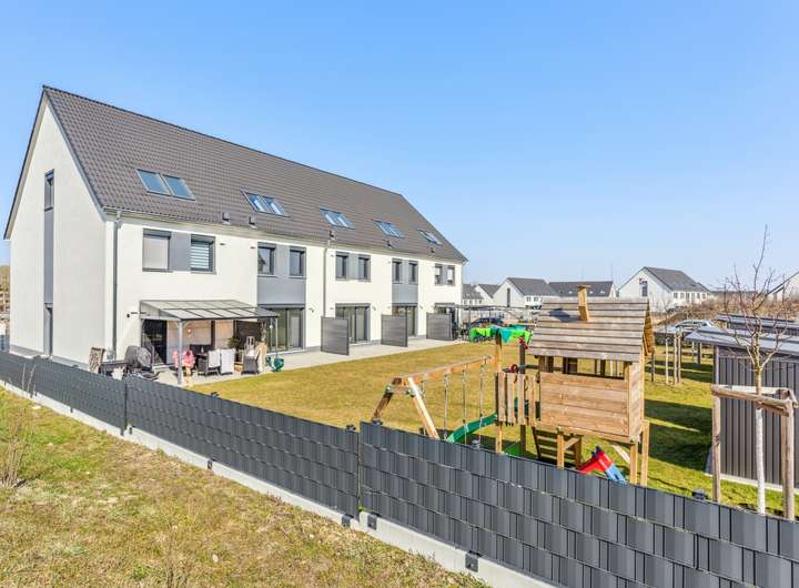 - Alle Reihenhäuser verfügen über Mietergärten mit Terrassen
