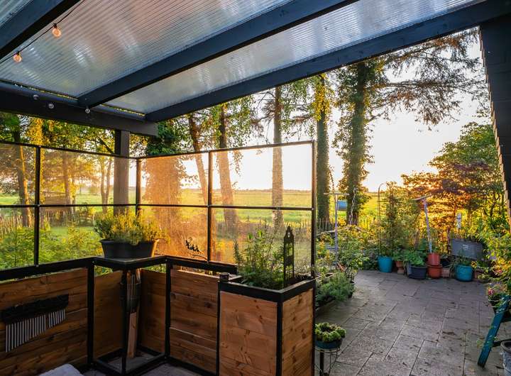 Das Highlight ist der unverstellte Weitblick über die angrenzenden Felder und Wiesen. Diese offene Aussicht schafft ein Gefühl von Freiheit und Weite – zu jeder Tageszeit und in jeder Jahreszeit.