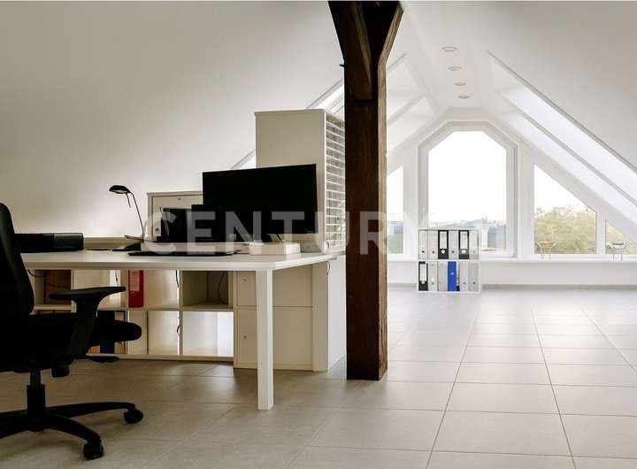 Das Obergeschoss führt in die großzügige Maisonettewohnung, die sich bis ins ausgebaute Dachgeschoss erstreckt und rund 120 Quadratmeter Wohnfläche umfasst. Hier verbinden sich Raum, Licht und ein herrlicher Ausblick zu einem besonderen Wohnerlebnis.