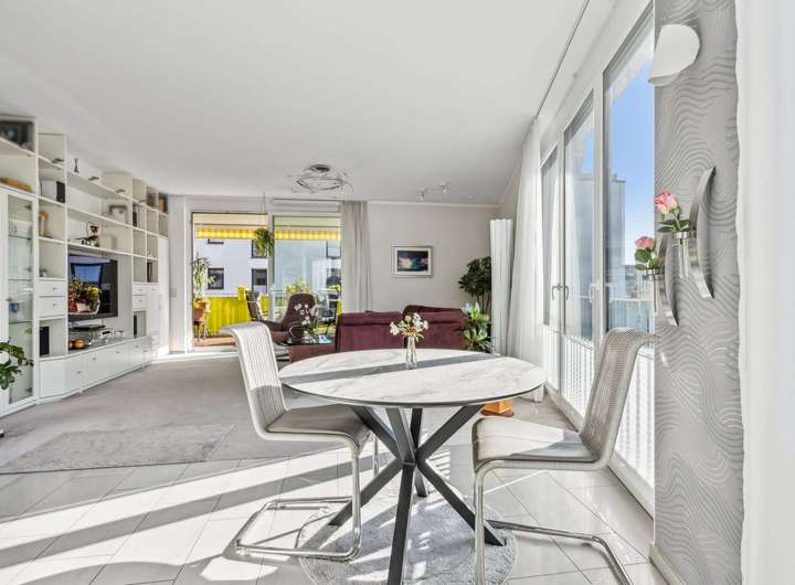 Willkommen in der „Sonnenterrasse Radolfzell“ – einer modernen 4-Zimmer-Wohnung, die urbanes Wohnen mit lichtdurchfluteten Räumen und großzügigem Grundriss vereint. Herzstück der Wohnung sind der sonnige Balkon und die Dachterrasse mit Gartenanteil, die Ihnen Privatsphäre, Sonne und Ruhe schenken.