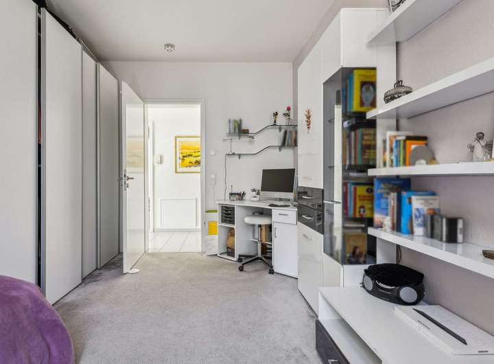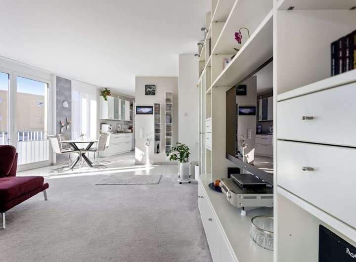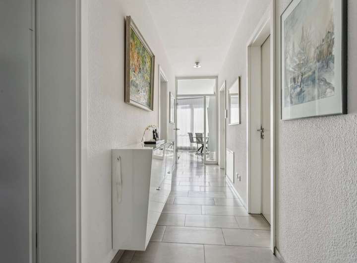 Die Wohnung besticht durch ein durchdachtes Raumkonzept und hochwertiger Ausstattung. Ein offener Wohn-, Essbereich und die offene Einbauküche schaffen Platz zum Leben, die drei separaten Schlafzimmer sorgen fürausreichend Platz zum Entspannen und Homeoffice. Das helle Badezimmer, sowie ein Gäste-WC sorgen für Komfort im Alltag. Hochwertige Ausstattungsdetails wie elektrische Rollläden, dreifach verglaste Fenster und Bodenbeläge aus Fliesen und Teppich, sowie einer fest installierten Reverse-Osmose-Wasserfilterungsanlage mit Sauerstoffanreicherung in der Küche, unterstreichen die Qualität dieser Immobilie.