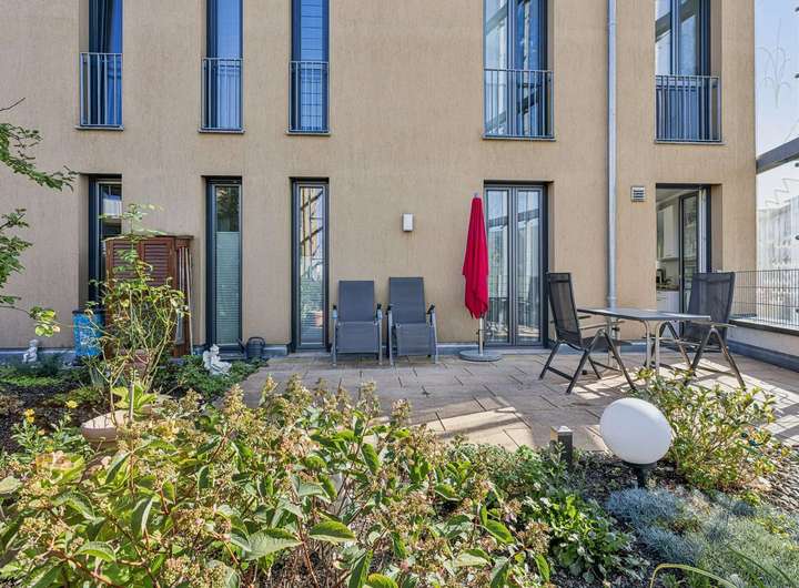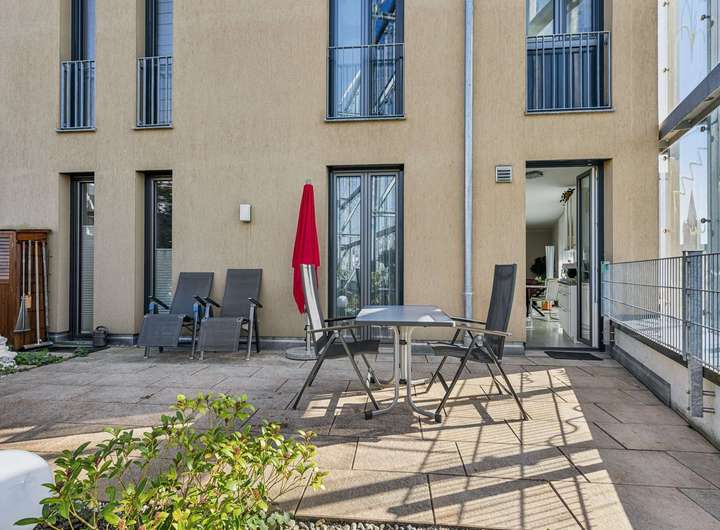 - Balkon zur Innenstadt, Terrasse mit Gartenanteil zum ruhigen Innenhof