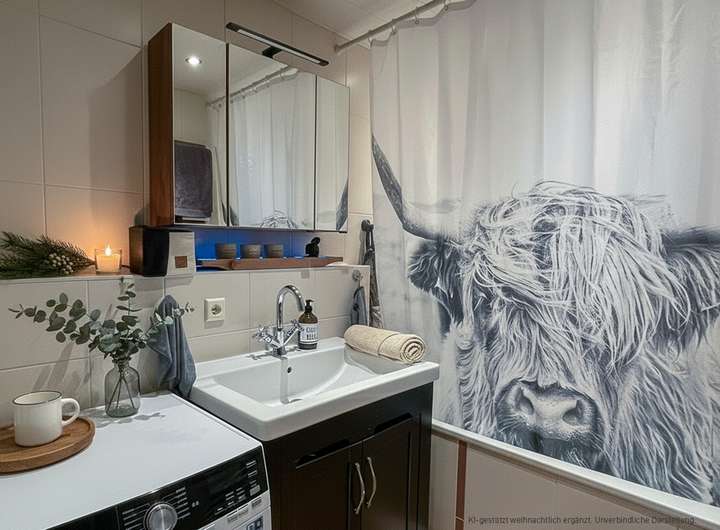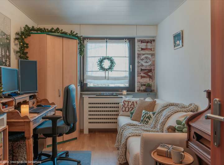 Einige Fotos zeigen eine KI-gestützte, virtuell möblierte Darstellung (Einrichtungsvorschlag) und dienen der Veranschaulichung. Die Wohnung wird unmöbliert angeboten; Möblierung und Dekoration sind nicht Bestandteil des Angebots und nicht im Preis enthalten. Die Darstellung kann vom tatsächlichen Zustand abweichen.