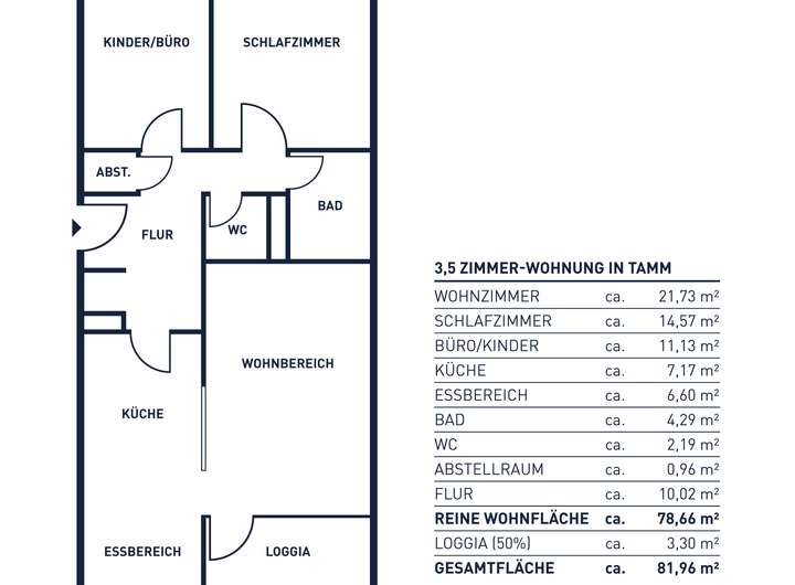 Die Gemeinde Tamm liegt im Herzen des prosperierenden Landkreises Ludwigsburg – nur 20 Minuten von Stuttgart entfernt – und verbindet hervorragende Verkehrsanbindung mit dem Charme einer modernen, gewachsenen Gemeinde. Durch die S-Bahn-Linie S5 sowie die Nähe zu A 81 und B 27 ist Tamm optimal erreichbar – für Pendler wie Unternehmen. Die Region Stuttgart zählt zu den innovativsten Europas mit zahlreichen Arbeitgebern aus Industrie, IT und Forschung.