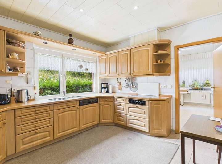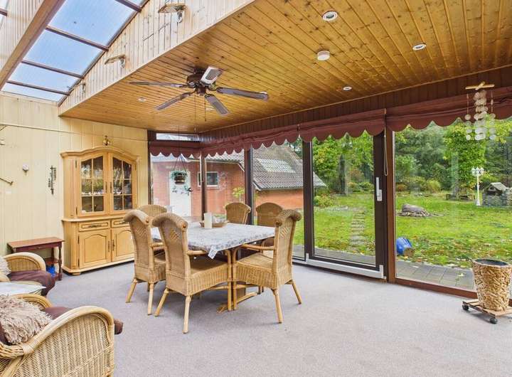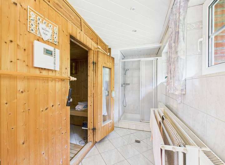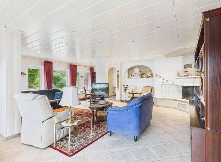 Bereits beim Betreten des Hauses spürt man den besonderen Charme dieser Immobilie. Die großzügige Wohnstube mit Kamin lädt zum Entspannen und Verweilen ein. Der lichtdurchflutete Wintergarten mit Blick ins Grüne bietet zu jeder Jahreszeit eine Oase der Ruhe und Entspannung. Für die besonders kalten Tage bietet Ihnen das großzügige Bad zudem eine luxuriöse Familiensauna.