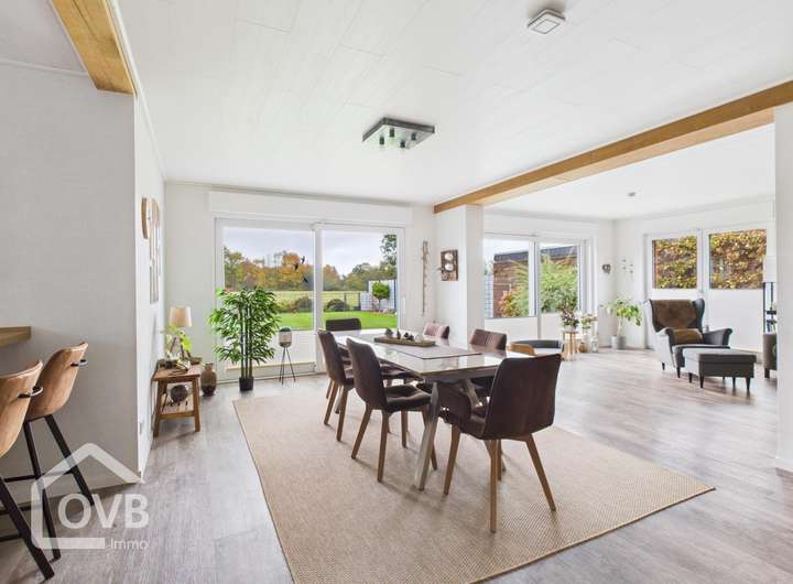 Ein lichtdurchfluteter, großzügiger und offener Wohn-/Ess-/Kochbereich mit Einbauküche aus 2020 lädt zum Kochen und Verweilen ein. Das Wohnzimmer verfügt über bodentiefe Fenster in südwest-Ausrichtung und einen direkten Zugang zum Garten. Ebenfalls im EG befinden sich drei Schlafzimmer, ein Tageslichtbad, ein Gäste-WC, ein HWR, ein Allzweckraum und ein kleiner Abstellraum.