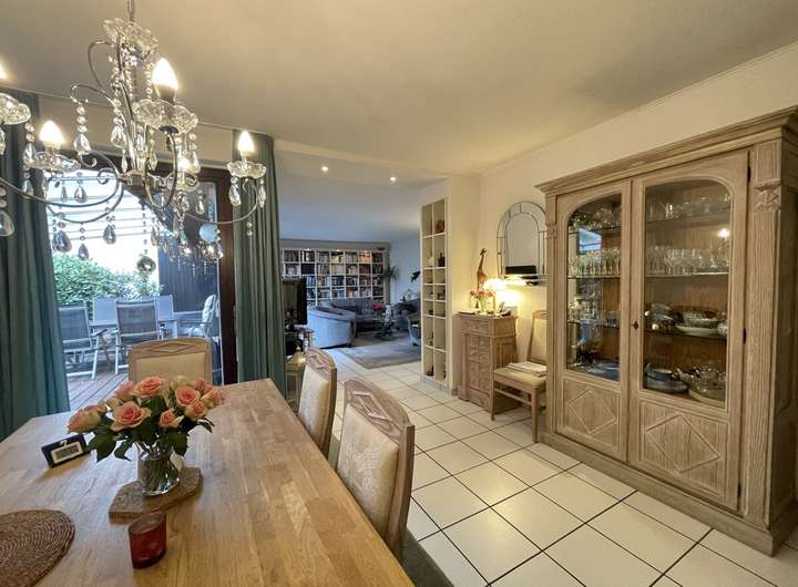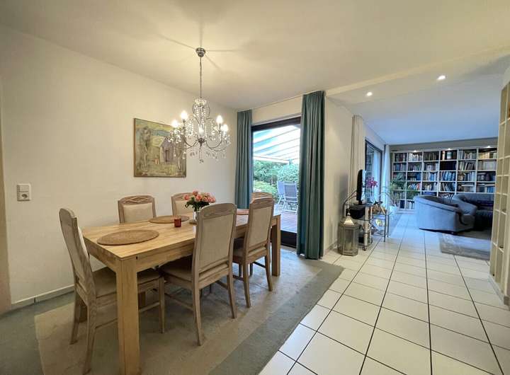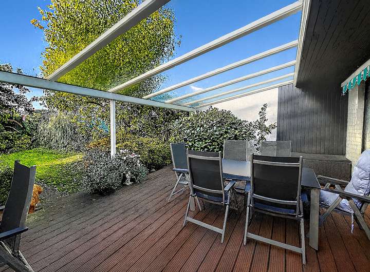 Der Wohn-Essbereich mit anliegender, überdachter Terrasse, ist das absolute Highlight dieses Winkelbungalows.