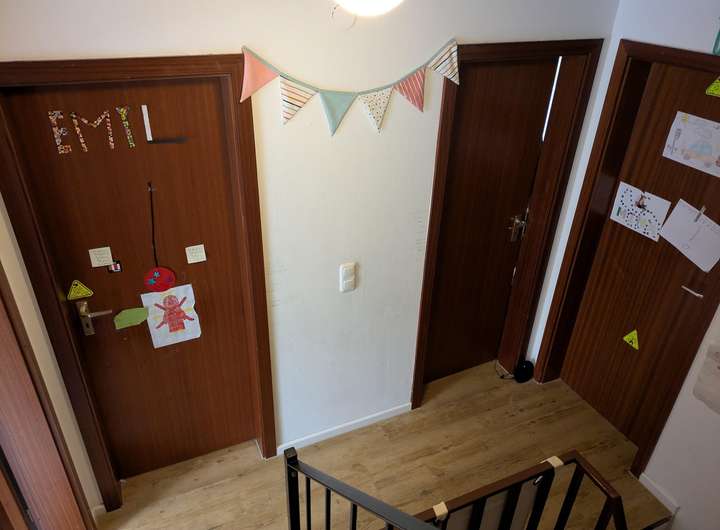 Kita und Grundschule sind 8 Gehminuten entfernt (mit Kind 15 Min. ;-).