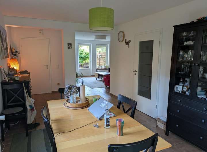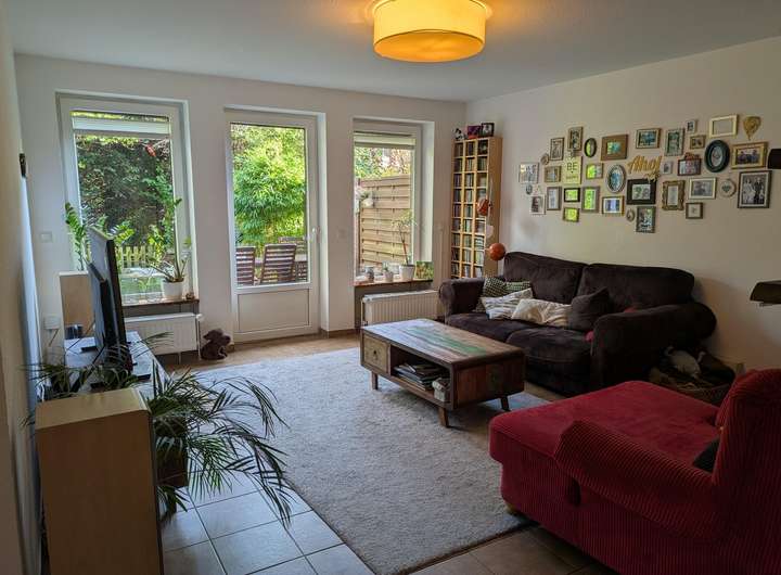 Garten und Terrasse sind von Grün umgeben und nahezu nicht einsehbar von umliegenden Häusern. Kinder können hier nach Herzenslust rumtoben, es gibt keine schwierigen Nachbarn. Im Gegenteil.