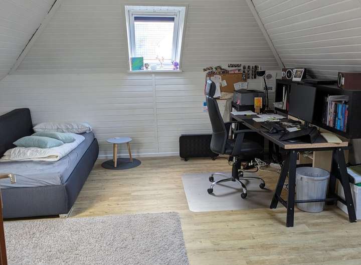 Hier wohnen Sie auf 123 m² plus Vollunterkellerung (nicht wohnlich ausgebaut). Die 5 Zimmer bestehen aus dem großen, offenen Wohn- und Essbereich im EG, 3 Schlafzimmern im 1. OG und 1 Dachzimmer. Letzteres ist voll ausgebaut und beheizt und taugt als viertes Schlaf- oder Gästezimmer.