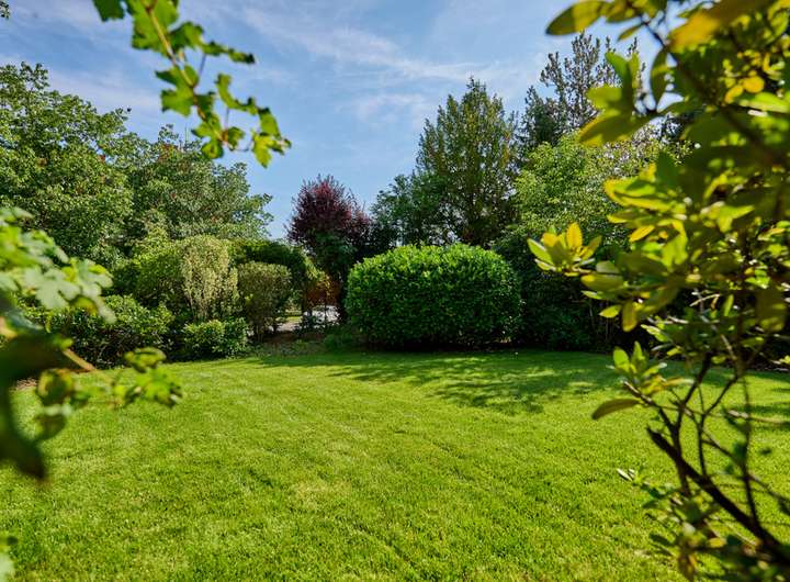 Der großzügige Garten ist liebevoll angelegt, uneinsehbar und bietet privaten Rückzugsraum im Freien - eine beruhigende, grüne Oase. Ein privater Sitzbereich lädt zum Verweilen ein, ideal für Barbecue-Abende oder ruhige Gespräche im Schatten.
