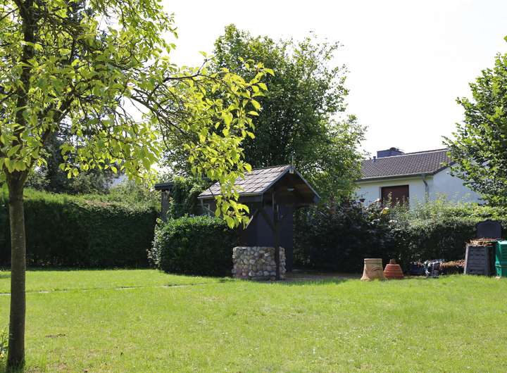 Ein Gartenhäuschen, ein Brunnen sowie auch ein Teich befinden sich auf dem großzügigen Grundstück.