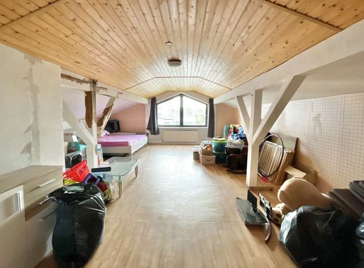 Das Satteldach ist mit Schiefereindeckung versehen und komplett isoliert. Das Dachgeschoss wurde bereits zu Wohnraum umgebaut, befindet sich jedoch in Sanierungsbedürftigem Zustand, was Raum für individuelle Gestaltungsmöglichkeiten bietet.