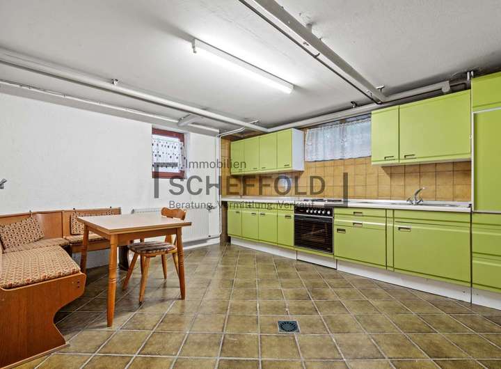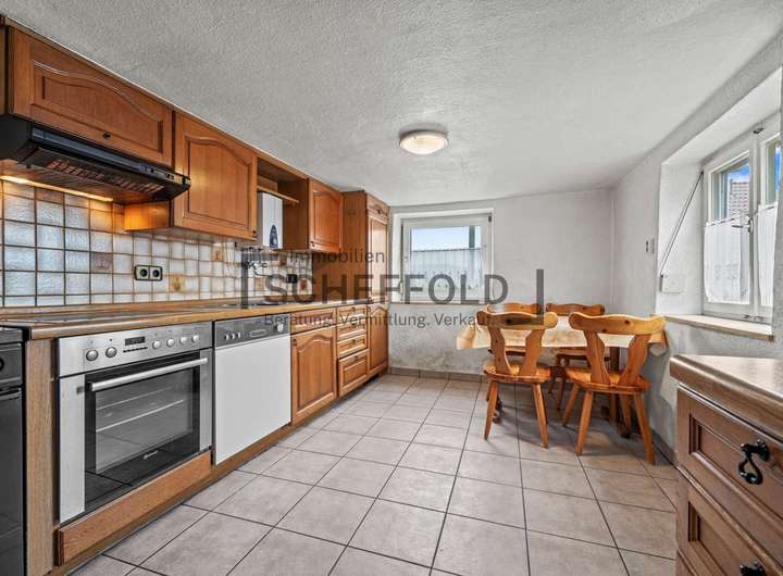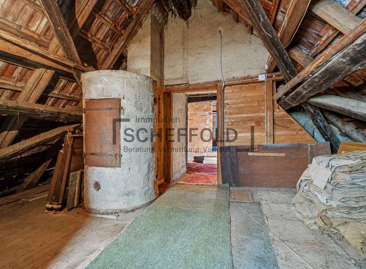 Das Wohnhaus ist zudem mit einer Einbauküche älteren Baujahrs ausgestattet, bietet einen großzügigen Balkon, sowie einen geräumigen Dachboden. Teilweise unterkellert verfügt es außerdem über einen kleinen Gewölbekeller und praktische Abstellmöglichkeiten.