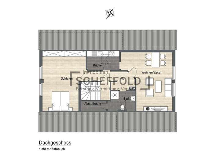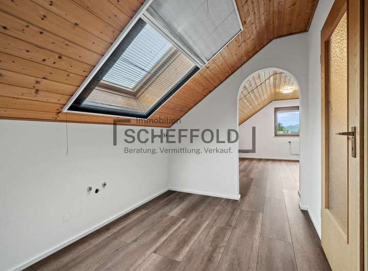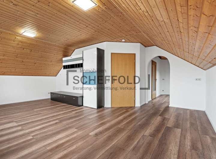 Im ausgebauten Dachgeschoss steht Ihnen zusätzlicher Wohnraum zur Verfügung. Hier befindet sich ein großzügiger Wohn- und Essbereich, eine separate Küche, ein Tageslichtbadezimmer sowie weitere Schlafmöglichkeiten – ideal als Einliegerbereich, Studio oder für heranwachsende Kinder.