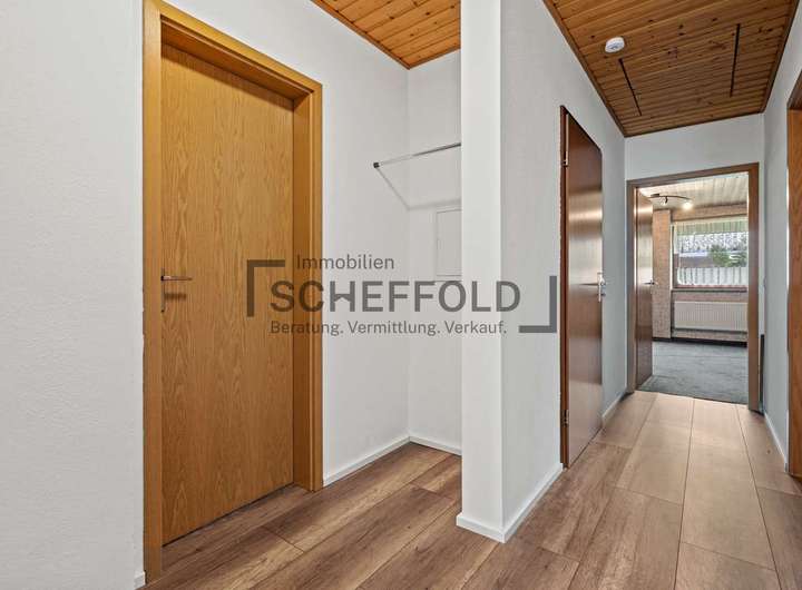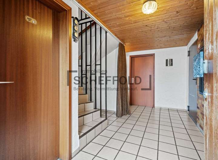 Beim Betreten des Wohnhauses empfängt Sie ein heller Eingangsbereich, der Sie herzlich willkommen heißt. Gleich links befindet sich eine Gäste-Toilette, während sich rechterhand die direkt ins Haus integrierte Garage und ein Abstellraum anschließt.