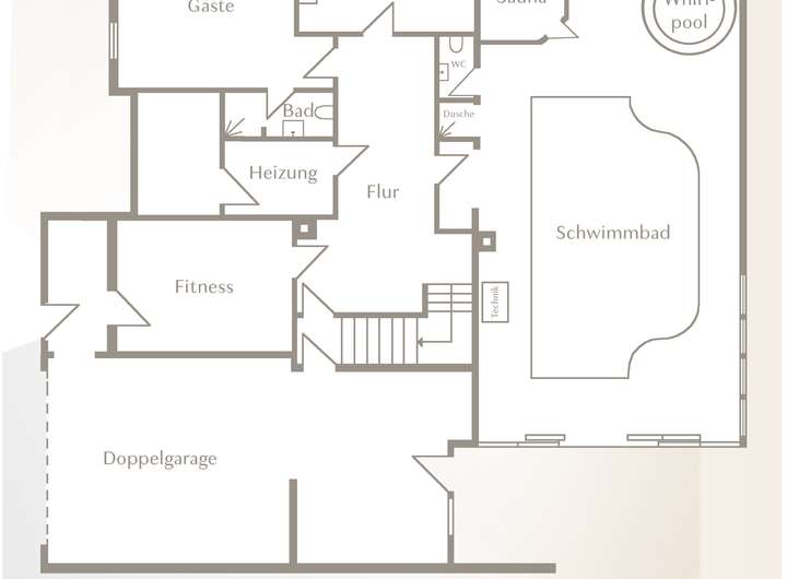 - Flexibel nutzbare Fläche im Untergeschoss - z. B. als Fitnessraum