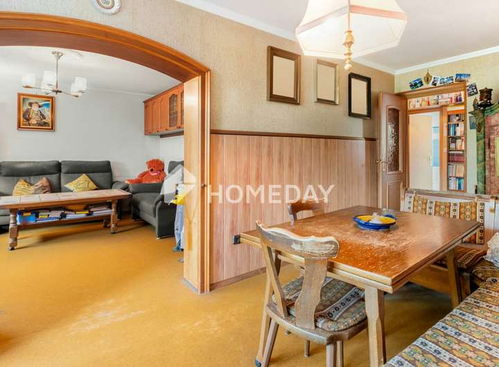 Der durchdachte Grundriss bietet optimale Nutzungsmöglichkeiten für Familien, Paare oder Homeoffice-Nutzer. Ein geräumiges Wohnzimmer mit Zugang zur geschützten Loggia lädt zum Verweilen ein, während das angrenzende Esszimmer ideal für gesellige Runden ist. Die Küche liegt separat und bietet viel Platz zum Kochen und kann gegen eine Ablöse in Höhe von 3000 € übernommen werden. Drei weitere Zimmer – als Schlaf-, Kinder- oder Arbeitszimmer nutzbar – schaffen Flexibilität im Alltag. Ein gepflegtes Tageslichtbad mit Wanne, ein separates WC sowie ein Abstellraum ergänzen das Raumangebot.