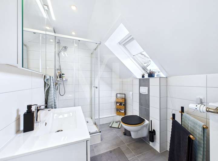 Im Obergeschoss erwarten Sie drei Schlafzimmer, die jeweils gut geschnitten sind und individuelle Rückzugsräume bieten. Ein weiteres, vollständig erneuertes Bad gewährleistet auch im Alltag ein hohes Maß an Komfort. Alle Wohnräume sind mit hochwertigen Bodenbelägen ausgestattet und vermitteln eine ansprechende Wohnatmosphäre.