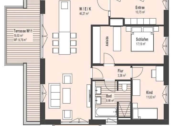 Das Exterieur des Gebäudes ist elegant, durchdacht und zeitlos. Die Eleganz spiegelt sich auch in dem Treppenhaus mit italienischem Bodenbelag, bis hin zum Eichenparkett in Dielenoptik in den Wohnungen wider. Die eleganten Bäder werden mit hellem Feinsteinzeug von Villeroy & Boch und Badewannen von Bette ausgestattet. Schicke Armaturen der Firma Hansgrohe runden das Gesamtbild ab. Dadurch entsteht ein modern konzipiertes