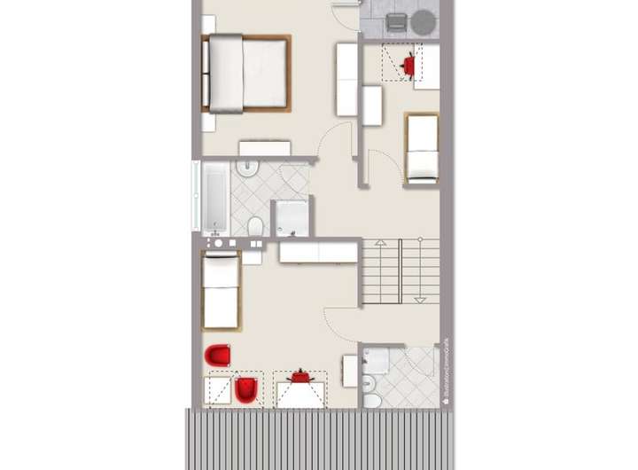 Ebene 1: Schlafzimmer mit Balkon, Gästezimmer, Tageslichtbad mit Wanne und Dusche,