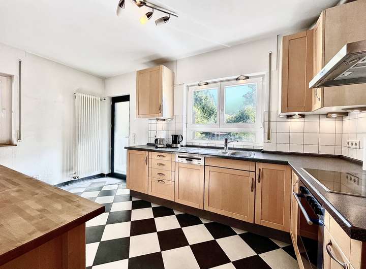 Mit einer Wohnfläche von ca. 170 m² bietet das Haus viel Platz für die ganze Familie. Insgesamt stehen acht Zimmer zur Verfügung, darunter eine Küche mit moderner Einbauküche, ein Tageslichtbad mit Wanne und Dusche sowie ein Gäste-Bad im Erdgeschoss. Das besondere Wohnflair und die großzügige Raumaufteilung machen diese Immobilie zu einem idealen Zuhause für Familien.