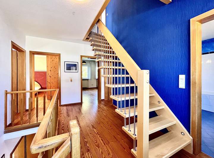 + Hochwertige Vollholztreppe zum Dachgeschoss