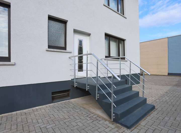 Die Immobilie befindet sich in einem gepflegten, funktionalen Zustand mit gut nutzbaren Grundrissen. Die solide Bauweise, moderne Bodenbeläge sowie eine bereits vorhandene Einbauküche bieten ideale Voraussetzungen für eine private und/oder gewerbliche Nutzung.