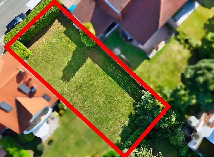 Somit bietet das Grundstück Raum für ein großzügiges Einfamilienhaus, ein Doppelhaus.