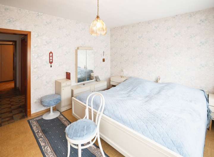 Die Hauptwohnung im Erdgeschoss mit ca. 102 m² teilt sich auf in einen großzügigen Wohnbereich mit Essecke, von hier aus haben Sie direkten Zugang zu einer einladenden, überdachten Terrasse und einem Balkon, die Ihnen entspannende Ausblicke in die Natur bieten. Eine Küche, ein Elternschlafzimmer, 2 kleinere Zimmer, ein Bad und Gäste WC komplettieren diese Etage.