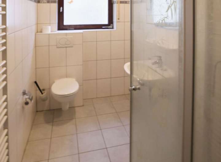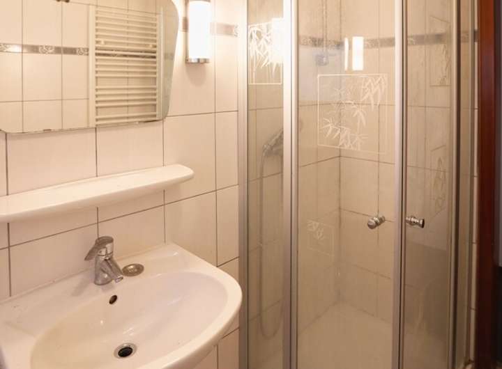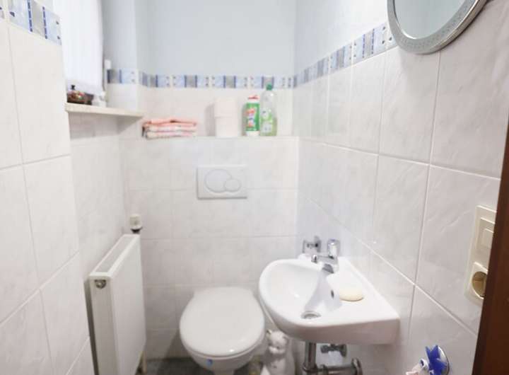 Das Badezimmer ist mit einer bodentiefen Dusche vor einigen Jahren modernisiert worden. Über ein offenes Treppenhaus gelangt man ins Dachgeschoss. Die hier vorhanden 71m² verfügen über ein geräumiges Wohnzimmer mit Zutritt zum Balkon, eine Küche, ein Schlafzimmer, ein Badezimmer und eine kleine Abstellkammer. Im Untergeschoss befindet sich eine Einliegerwohnung mit ca. 68m² und separatem Eingang. Hier befinden sich ein Wohnbereich, eine Küche, ein Schlaf- und ein Badezimmer. Des Weiteren ist das Haus voll unterkellert, wodurch zusätzlicher Stauraum geschaffen wird.