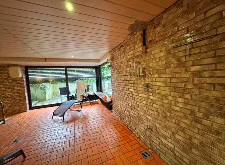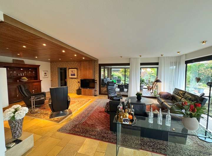 Repräsentatives, gepflegtes Wohnhaus mit Doppelgarage und großem Wellnessbereich in bevorzugter Lage. Das große Grundstück mit schönem Garten in Süd-Westausrichtung ist mit einem Sichtschutzzaun vor fremden Blicken geschützt. Insgesamt bietet das Haus absolut gehobenen Wohnkomfort, verteilt auf das Erdgeschoss mit großzügigem Wohn-Essbereich mit Kamin, verglaster Terrasse, Küche mit Einbauküche, Arbeitszimmer, Flur mit Garderobe, Gäste WC, Hauswirtschaftsraum und einem separaten Bereich mit Schlafzimmer und Bad mit Wanne, Dusche und WC. Im Dachgeschoss befinden sich ein Schlafbereich mit Ankleide, überdachtem Balkon und Bad mit Wanne, Dusche, Bidet und WC, Abstellraum sowie zwei Kinderzimmer mit Balkon und eigenem Duschbad mit WC.