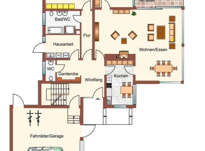 - große, unterkellerte Doppelgarage mit elektrischem Rolltor und Funkbetrieb