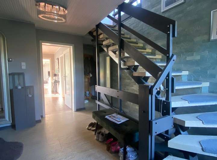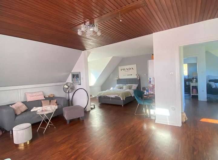Das Haus bietet auf rund 280 m² Wohnfläche viel Raum für eine große Familie. Zusätzlich gibt es etwa 104 m² Nutzfläche im Keller. Die Fenster sind isolierverglast und mit Rollläden ausgestattet, im Obergeschoss sorgen Velux-Dachfenster für viel Licht.