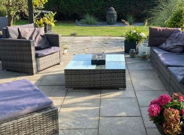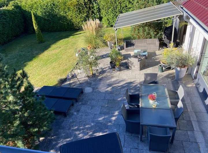 Terrasse, Wintergarten, Garten, Keller, Vollbad, Duschbad, Einbauküche, Gäste-WC, Kamin, Fliesen