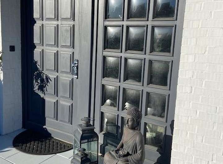 Außerdem gibt es im Erdgeschoss ein Elternschlafzimmer, ein Ankleidezimmer, zwei Arbeitszimmer, eine Küche mit Einbauküche und separatem Eingang, ein Bad mit Wanne und Dusche, ein Gäste-WC sowie eine großzügige Diele mit offener Natursteintreppe ins Obergeschoss.