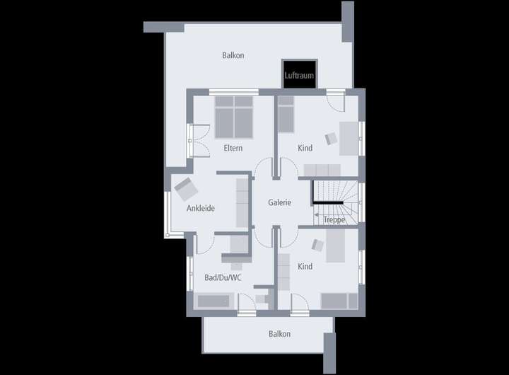 Für alle Naturliebhaber: Zwei Balkone sowie die große und teilweise überdachte Eckterrasse ermöglichen ganzjährig den Weg nach draußen. Die stützenden Wandscheiben setzen architektonische Akzente und bieten Wind- und Wetterschutz. Und auch für den Innenbereich gilt: typisch OKAL!