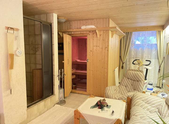 Das vollständig unterkellerte Haus bietet vielfältige Nutzungsmöglichkeiten: Im Keller sind ein Büro und ein weiteres Zimmer mit eingebautem Waschbecken, ein Entspannungsraum mit integrierter Sauna und Dusche sowie ein separates Gäste-WC untergebracht. Als besonderes Highlight lädt die rustikale Kellerbar zu geselligen Abenden im Freundes- oder Familienkreis ein.