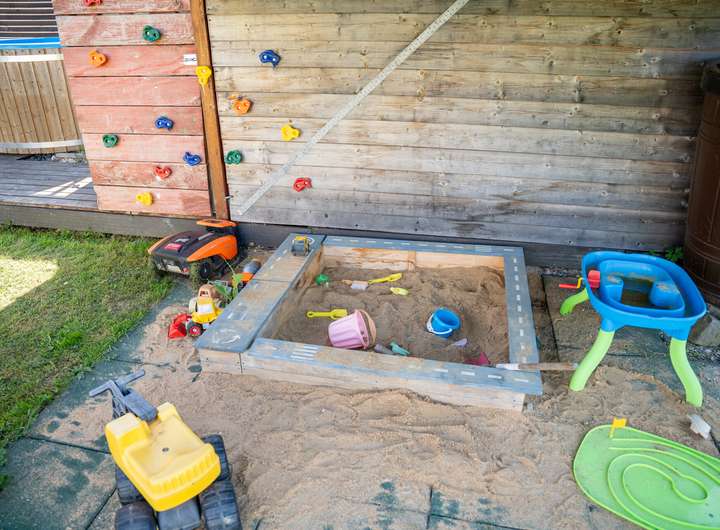 Der große Garten mit XXL-überdachter Terrasse, Spielturm und viel Platz zum Entspannen ist ein echtes Highlight für Familien. Für Wellness sorgt die integrierte Sauna, die zu erholsamen Stunden einlädt.