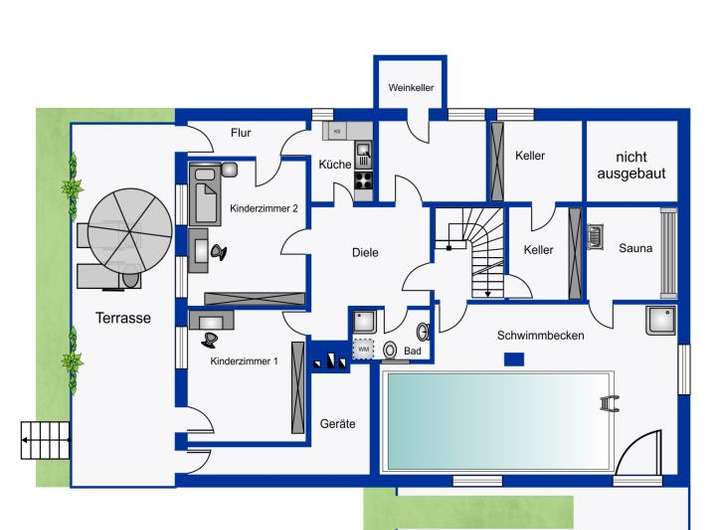 Ausreichend Kellerräume, Hauswirtschaftsraum, Weinkeller und eine Garage stehen Ihnen zur Vefügung.
