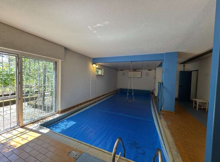 Sie und Ihre Kinder schwimmen gerne: ein richtig großer und gepflegter Indoor-Pool mit großen Fenstern zur Gartenterrasse wartet schon auf Sie!