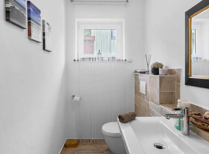 Bitte beachten Sie, dass die Terrassenfläche im Erdgeschoss und der Freisitz im Untergeschoss noch nicht in der Wohnflächenberechnung berücksichtigt wurde. Das Haus läßt von seinen umfänglichen Möglichkeiten nichts vermissen. Sie können z.B. im OG ein weiteres Zimmer generieren, und/oder eine Sauna installieren. Der Platz für eine "Wallbox" zum elektrischen Laden wartet auf Sie.