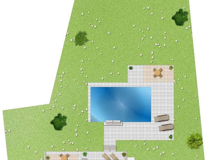Genießen Sie im ruhigen Garten hinter dem Haus Ihre Privatsphäre – umgeben von Bäumen und Sträuchern. Der Poolbereich, nur wenige Stufen von der Terrasse entfernt, bietet noch mehr Raum für Ihre Outdoor-Möbel und ein sonniges Plätzchen zum Entspannen.