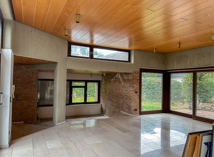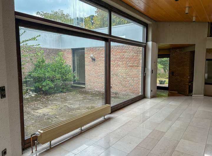 In einer der begehrtesten Wohnlagen Münsters, im charmanten Wilkinghege, verbirgt sich hinter einer schützenden Gartenmauer ein architektonisches Unikat, das seinesgleichen sucht. Schon beim Betreten des Grundstücks spürt man, dass dieses Haus mehr ist als nur ein Ort zum Wohnen – es ist ein Statement für großzügiges, offenes und lichtdurchflutetes Leben. Die Gesamtwohnfläche von rund 186 m² verteilt sich auf weitläufige, ineinander übergehende Räume, die durch große Fensterfronten, fließende Übergänge und ein zentrales Atrium geprägt sind. Dieses Atrium ist das Herzstück des Hauses: ein grüner Innenhof, der das Tageslicht tief ins Innere trägt und den Blick ins Freie selbst dort ermöglicht, wo man es nicht erwarten wü