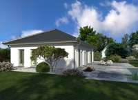 Unser Bungalow 1 Walmdach bietet auf einer Wohnfläche von 107 m² alles, was die Kleinfamilie zum Wohnen und Wohlfühlen benötigt. Das kombinierte Wohn-Ess-Zimmer ist großzügig geschnitten und dank drei Glastüren zum Garten hin schön hell. Auch die vom Esszimmer türlos zugängliche Küche bietet genügend Platz und Tageslicht. Der angrenzende, 10 m² große Hauswirtschaftsraum ist auch direkt von außen betretbar und hat dadurch gleich in doppelter Hinsicht einen praktischen Nutzen: Einkäufe können auf diese Weise direkt versorgt werden und die Wohnräume bleiben von möglichen Schmutzschuhen verschont. Der ebenfalls geräumige Flur verbindet den Wohnbereich des Hauses mit den privaten Rückzugsorten: dem Bereich der Eltern mit Schlafzimmer und angeschlossener Ankleide und einem lichtdurchfluteten Kinderzimmer. Ein voll ausgestattetes Bad mit Badewanne und Dusche sowie ein Gäste-WC runden das Angebot ab.